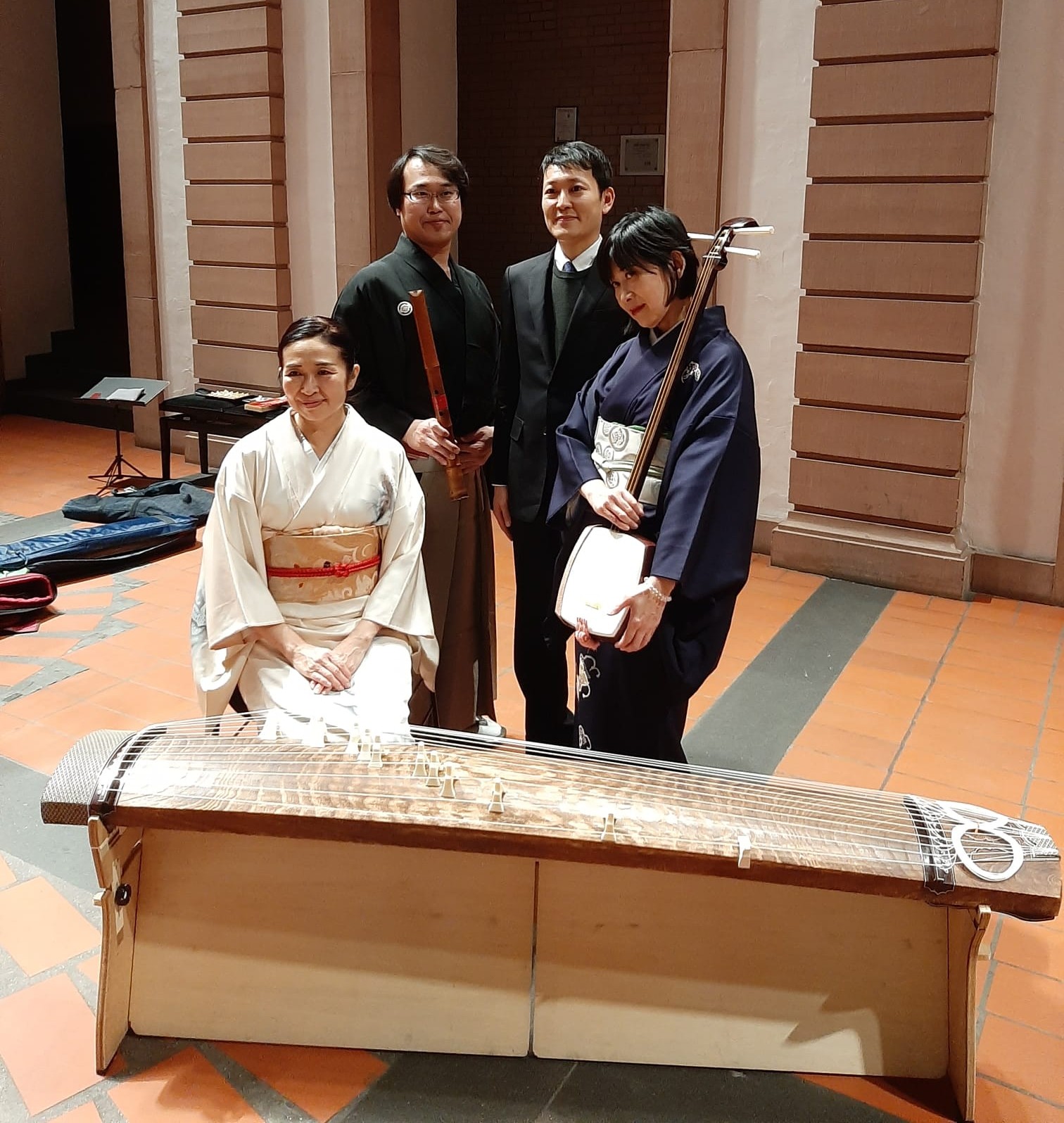 左から箏の菊地奈緒子さん、尺八の黒田鈴尊さん、橫川さん、三味線のみやざきみえこさん