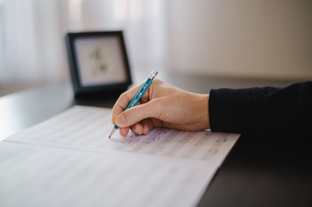 作曲する橫川朋弥さん