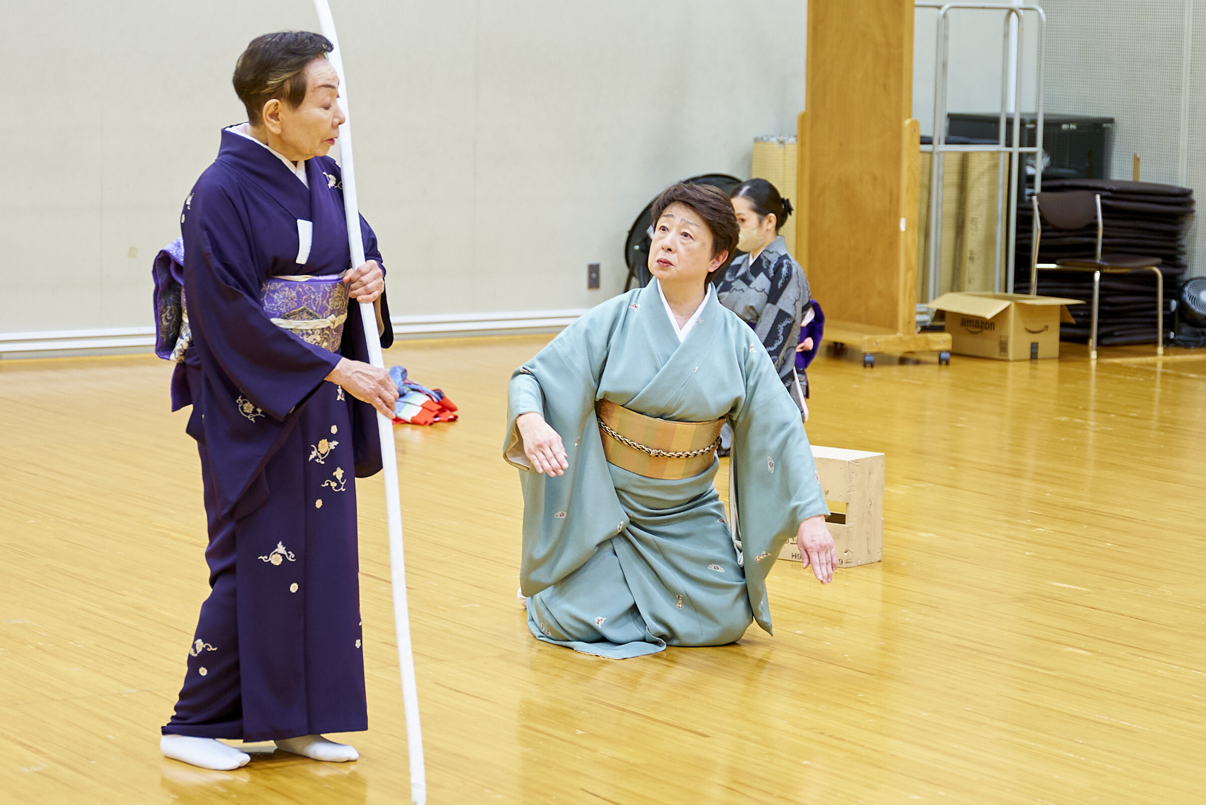 母と五郎の間を取り持つのが兄の十郎。水木佑歌氏は、柔らかみを保ちつつ、女性っぽくなってはいけない身のこなしという難しさに加え、「なんとかして母に弟の勘当を解いて欲しい、長男として、兄として、母と弟のそれぞれの思いを汲み取り二人をつなぐ役です。母に会う時と五郎に対する時とを演じ分けていくところに繊細な演技が求められます。」、「稽古は発見の連続で、今回のような衣裳での経験もまだ多くはありませんが、試行錯誤を重ねながら、一つずつ着実に積み上げていきたい。」と語ります。